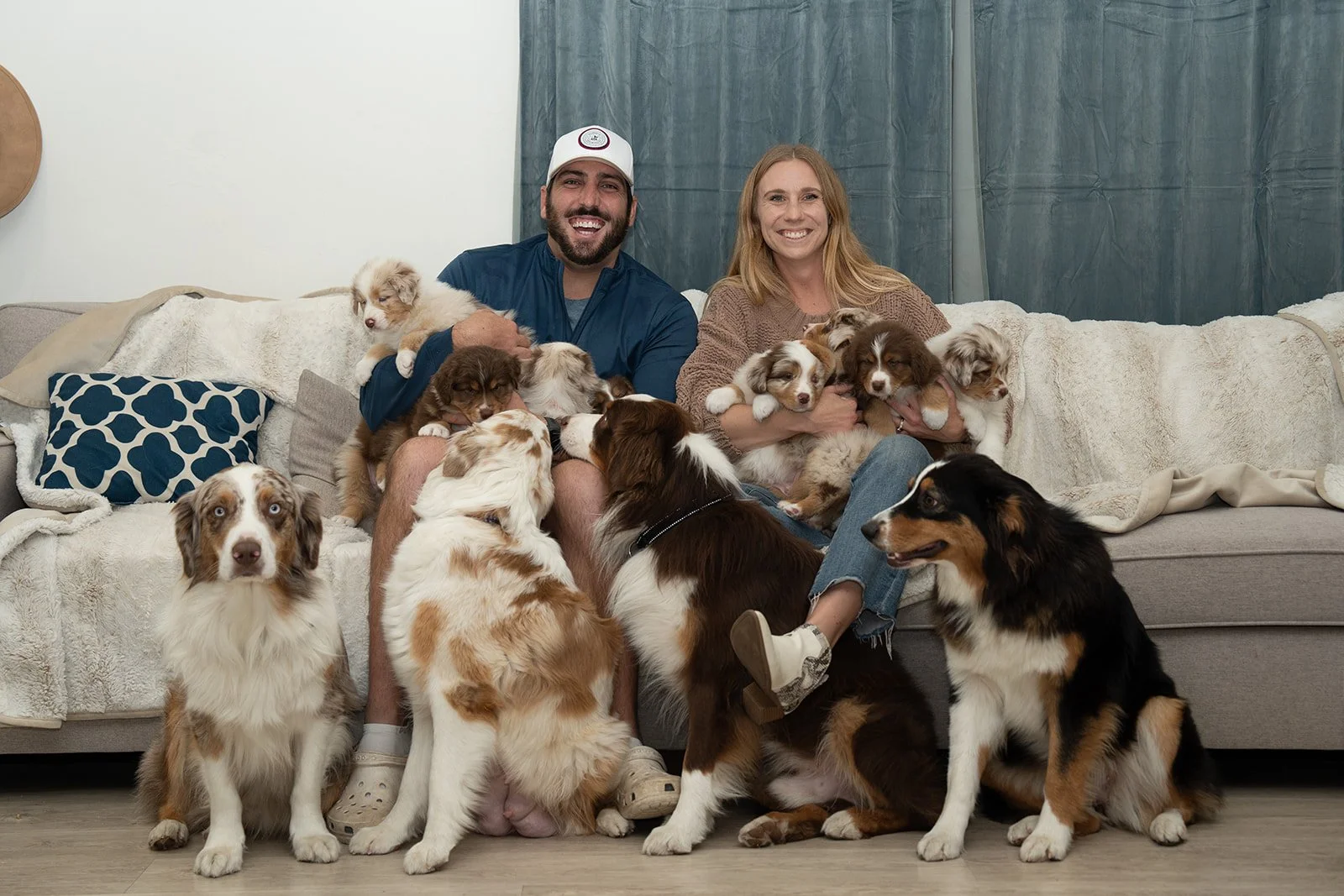 From a young age, Madalyn always had a passion for dogs. Her parents would say from the moment she could talk she was asking for one. Having had multiple breeds growing up, it was the Australian Shepherd that stole her heart. After looking more into the breed, Ryan was quickly on board as well. After extensive research into breeders, they got their first one together from Laura at Red Forrest Aussies who has been breeding over 30 years, is a confirmation judge, and who quickly became a mentor and friend to Madalyn as she expressed interest in preserving the breed and breeding to the highest standard as well. Madalyn jumped right into confirmation, agility, and other various dog sports, learning quickly there is no limit to what the Aussie can do! Both Madalyn and Ryan love the breed and put everything they have into breeding and raising Australian Shepherds with exceptional temperaments and show quality looks. Excellence by design inside and out. Purposefully bred for beauty, balance, and brilliance!